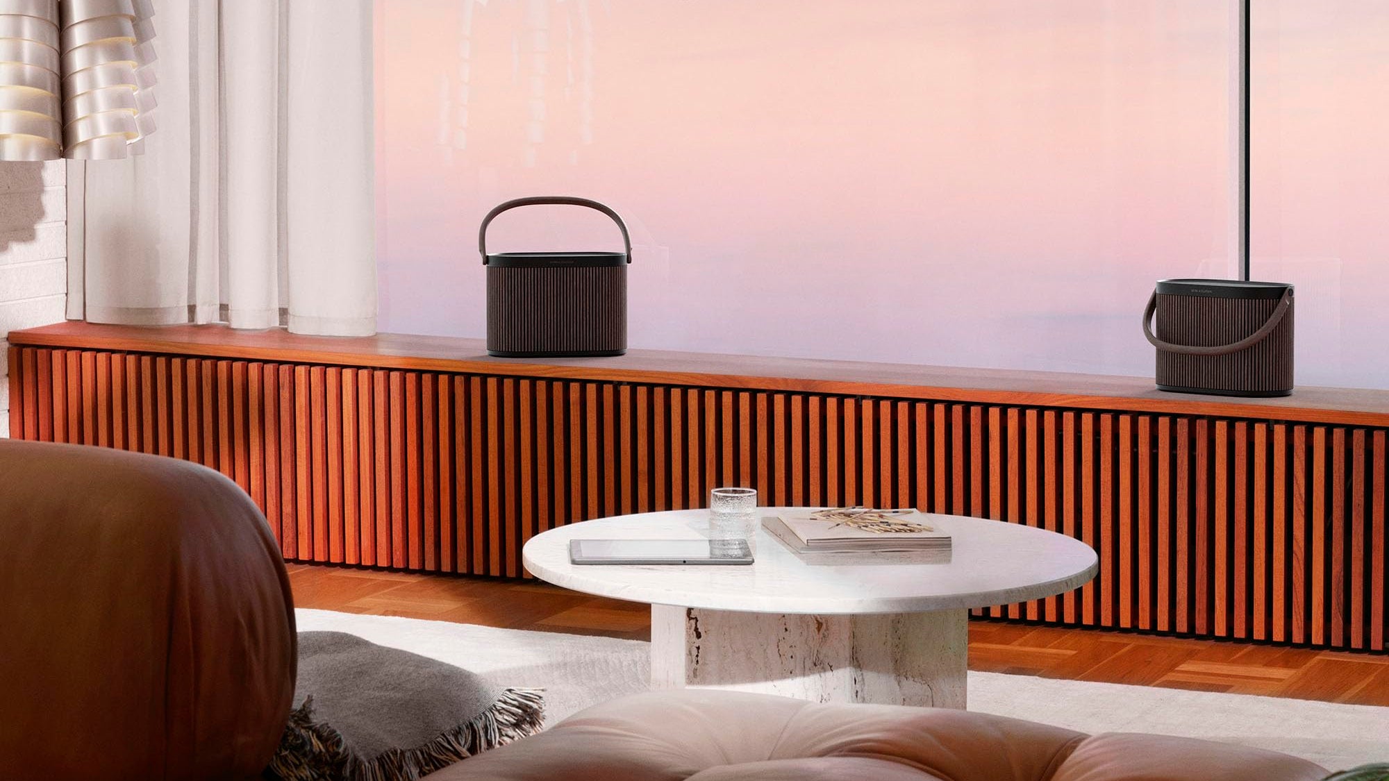 Take your music anywhere with thisportable Bluetooth speaker, designed for both indoor and outdoor use. Its compact, durable design features an elegant wooden handle, making it easy to carry while delivering high-quality, room-filling sound.